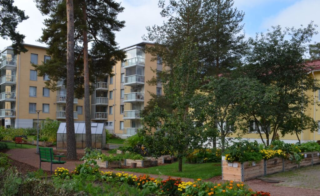 DiakonKylä ei ole vain taloja – se on myös ympäristö, jossa luonto on aina läsnä. Pihapiiristä löytyy hyötypuutarha, luontopolku penkkeineen sekä kota yhteisiä hetkiä varten. Läheltä alkavat myös Isomäen ulkoilureitit ja kesäisin maauimala houkuttelee virkistäytymään.