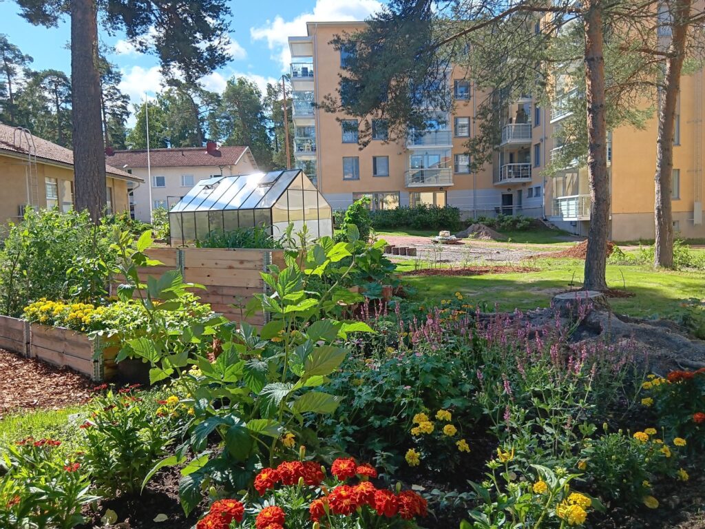 DiakonKylä ei ole vain taloja – se on myös ympäristö, jossa luonto on aina läsnä. Pihapiiristä löytyy hyötypuutarha, luontopolku penkkeineen sekä kota yhteisiä hetkiä varten. Läheltä alkavat myös Isomäen ulkoilureitit ja kesäisin maauimala houkuttelee virkistäytymään.